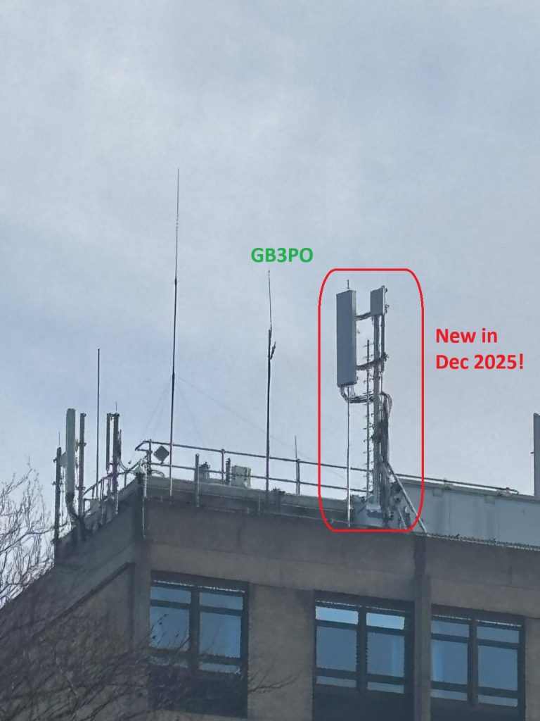 GB3PO currently has degraded coverage due to the erection of a cellular antenna array nearby. This has affected another existing installation on the roof as well and we are jointly approaching the Hospital to find a solution.